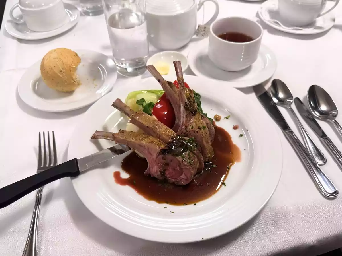 The meals in Sleeper Plus are usually the first thing our team will point out when they return from our journey. Food is plentiful, cooked onboard, and served hot in the dining car. And even across each trip's rotating menu, our team continually recommends the lamb for dinner, and the eggs Benedict the following morning for brunch.